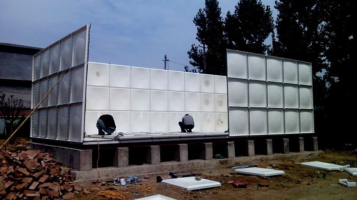 騰翔玻璃鋼水箱主體采用食品樹脂作為原材料,重量比不銹鋼板材重,采用螺栓與密封膠的方式進行組合裝配,不用焊接工藝,水箱裝配而成,作為側(cè)面承壓能力的關(guān)鍵所在,拉筋是不可少的。水箱底部設(shè)置鍍鋅槽鋼。水箱附件有檢查孔、表里扶梯、工藝管口、材料均為不銹鋼,水箱工藝管口按用戶供應(yīng)的圖樣規(guī)劃。型板間設(shè)置水平加強板,加強材料同箱體材料。